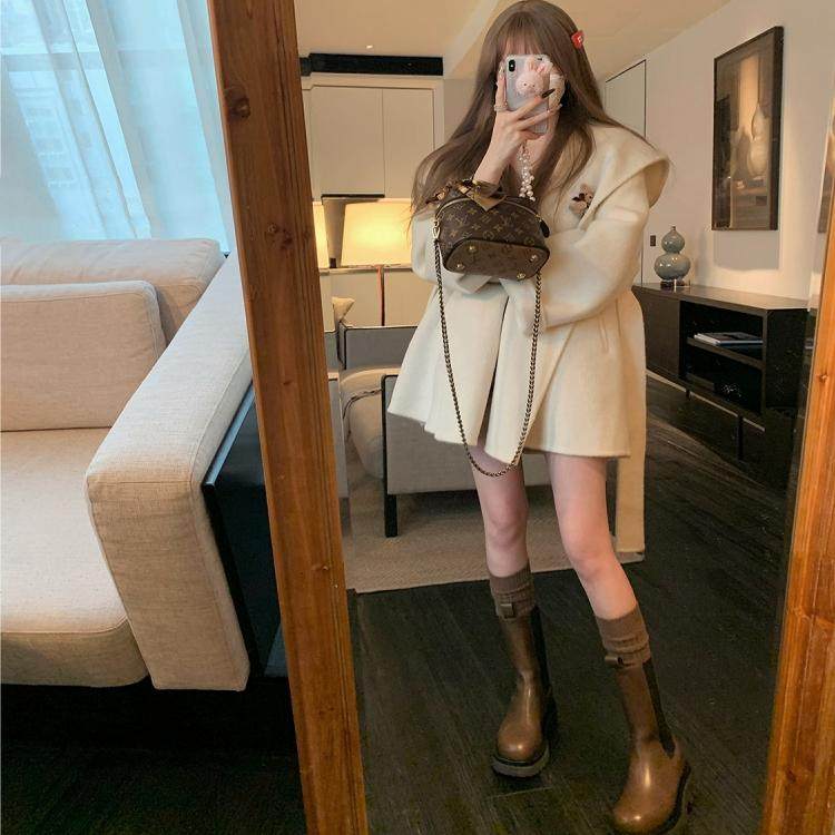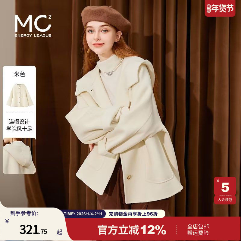 mc2米白双面羊毛气质呢大衣女短款冬新款时尚连帽温柔初冬穿搭