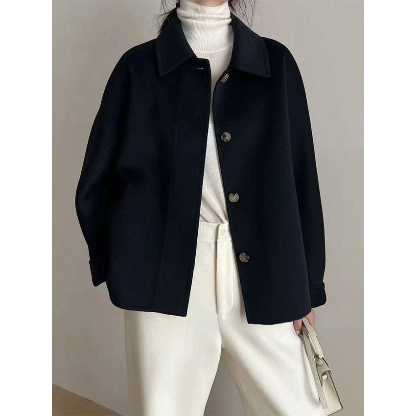 布景羊毛大衣女短款冬季新品简约西装领全羊毛宽松毛呢外套1501