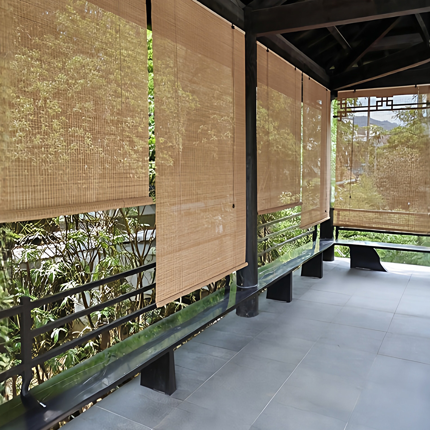新中式竹帘卷帘隔断帘户外遮阳帘茶室挂帘窗帘古风凉亭阳台遮光帘