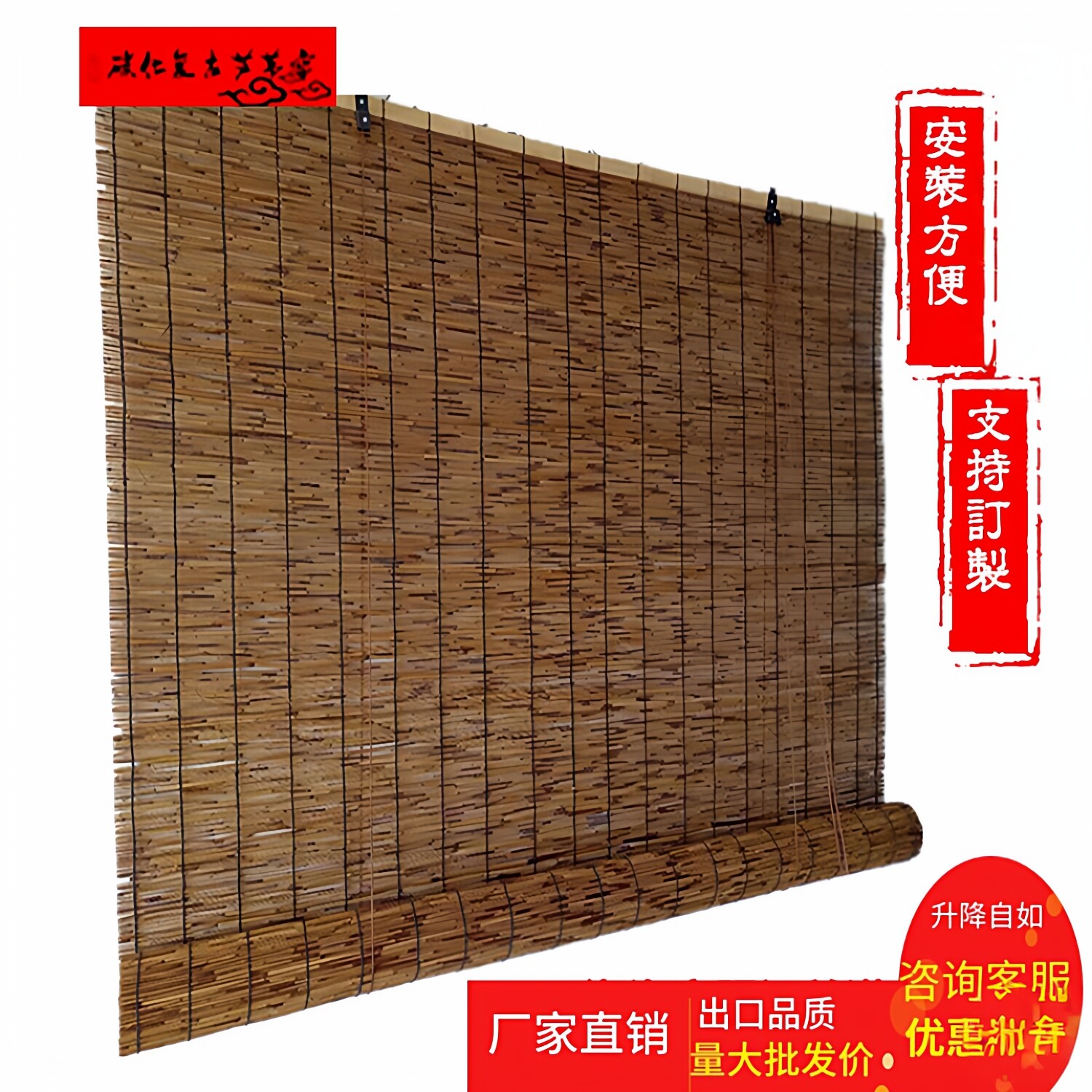 定做复古碳化芦苇帘子遮阳竹卷帘店铺墙面装饰茶室隔断窗帘草席帘