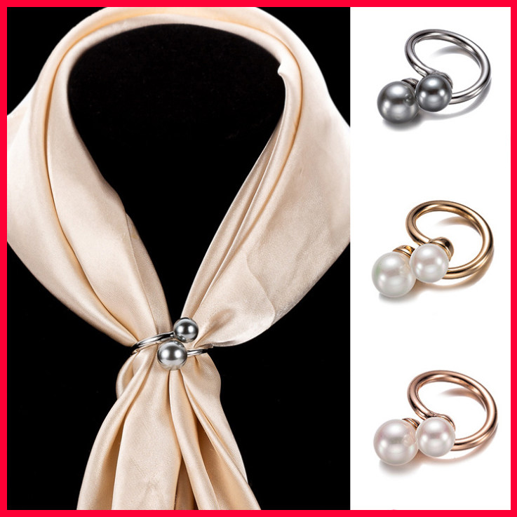 高档丝巾扣简约小方巾扣环珍珠胸针单环戒指百搭衬衫飘带系结配饰