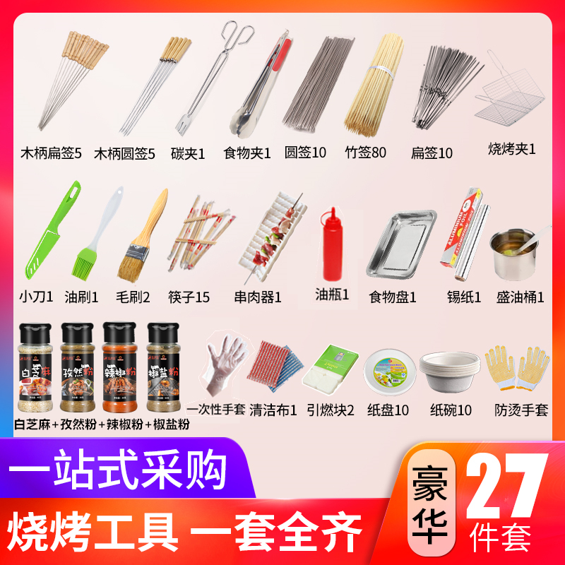 烧烤用具全套餐调料酱料签子家用木炭烤炉烧烤架工具野餐户外用品