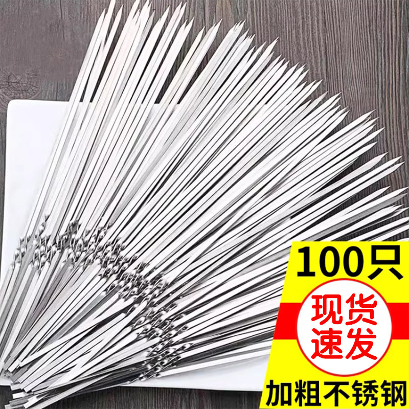 烧烤签不锈钢家用扁签户外羊肉串烤肉签子钢签铁签全套工具烧烤针