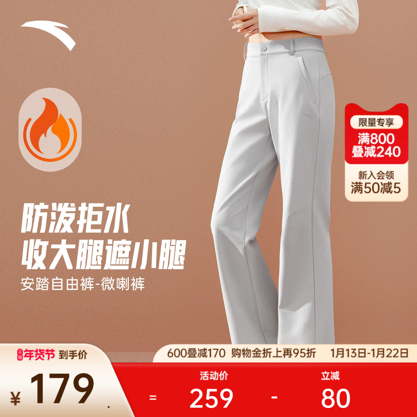 安踏自由裤丨显瘦微喇裤防泼水女裤冬季新款商务加绒休闲裤运动裤