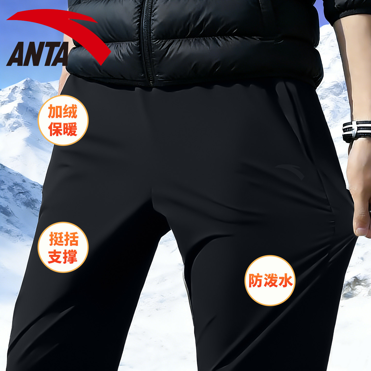 安踏裤子男冬季加绒加厚保暖直筒长卫裤男士防风防泼水雪地运动裤