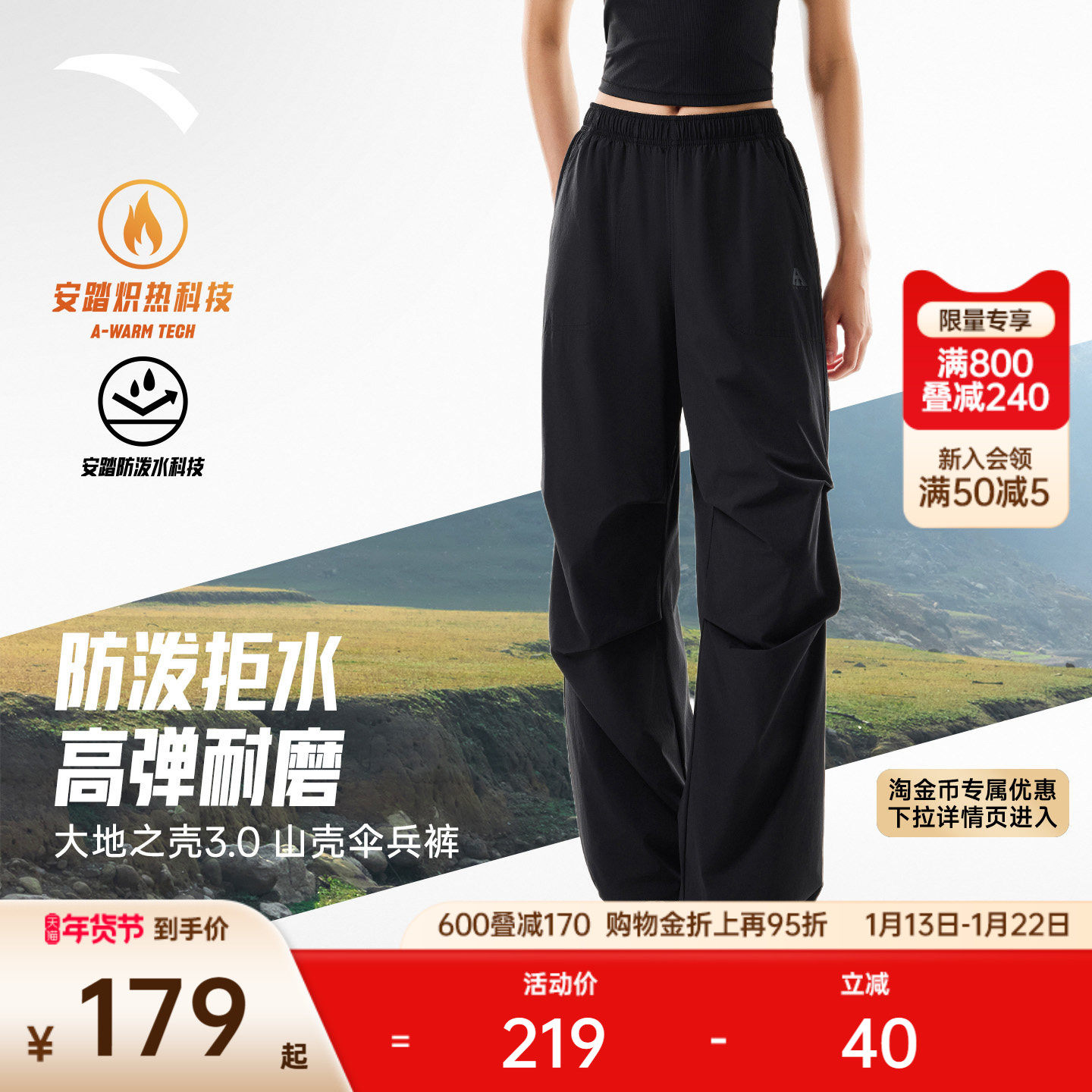 安踏山壳裤丨大地之壳3.0梭织防泼水运动长裤男户外软壳休闲裤子