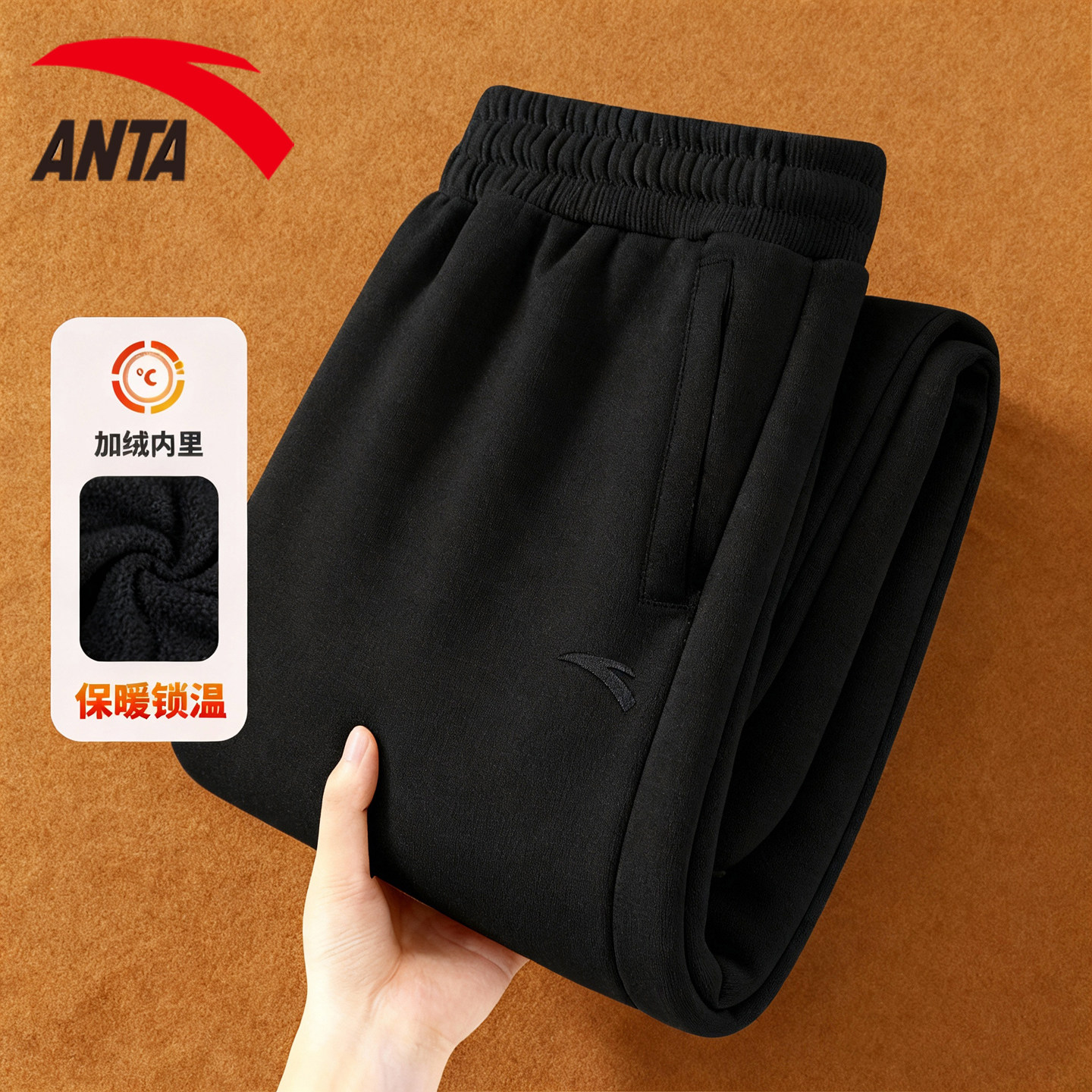 安踏好事发生丨“有钱花”加绒运动卫裤男士冬宽松休闲束脚长裤子