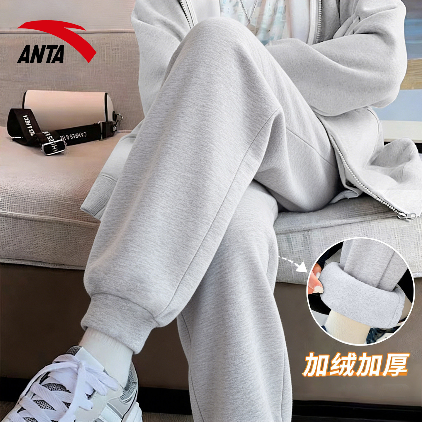 安踏裤子女款2026冬新款加绒针织束脚裤加厚卫裤女子休闲运动长裤