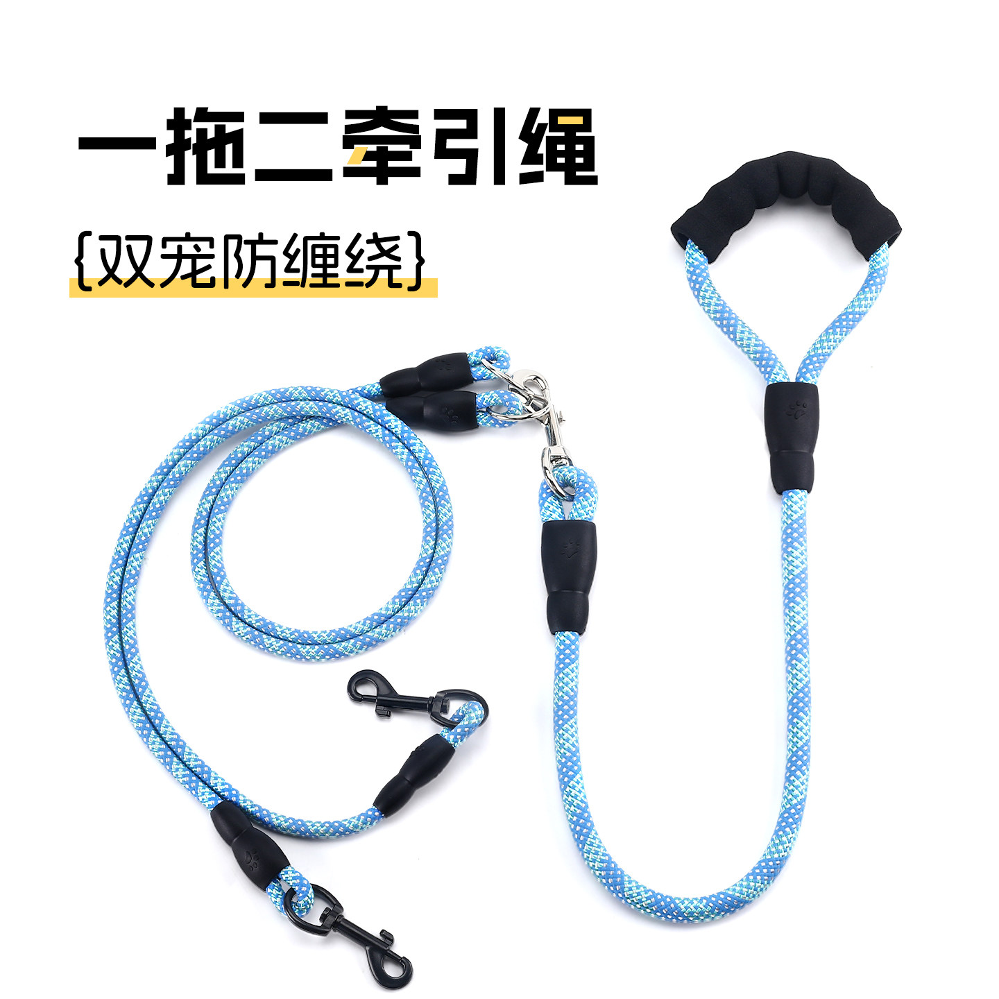 狗狗牵引绳一拖二防缠绕小中型犬双头遛狗绳多功能防挣脱狗链狗绳