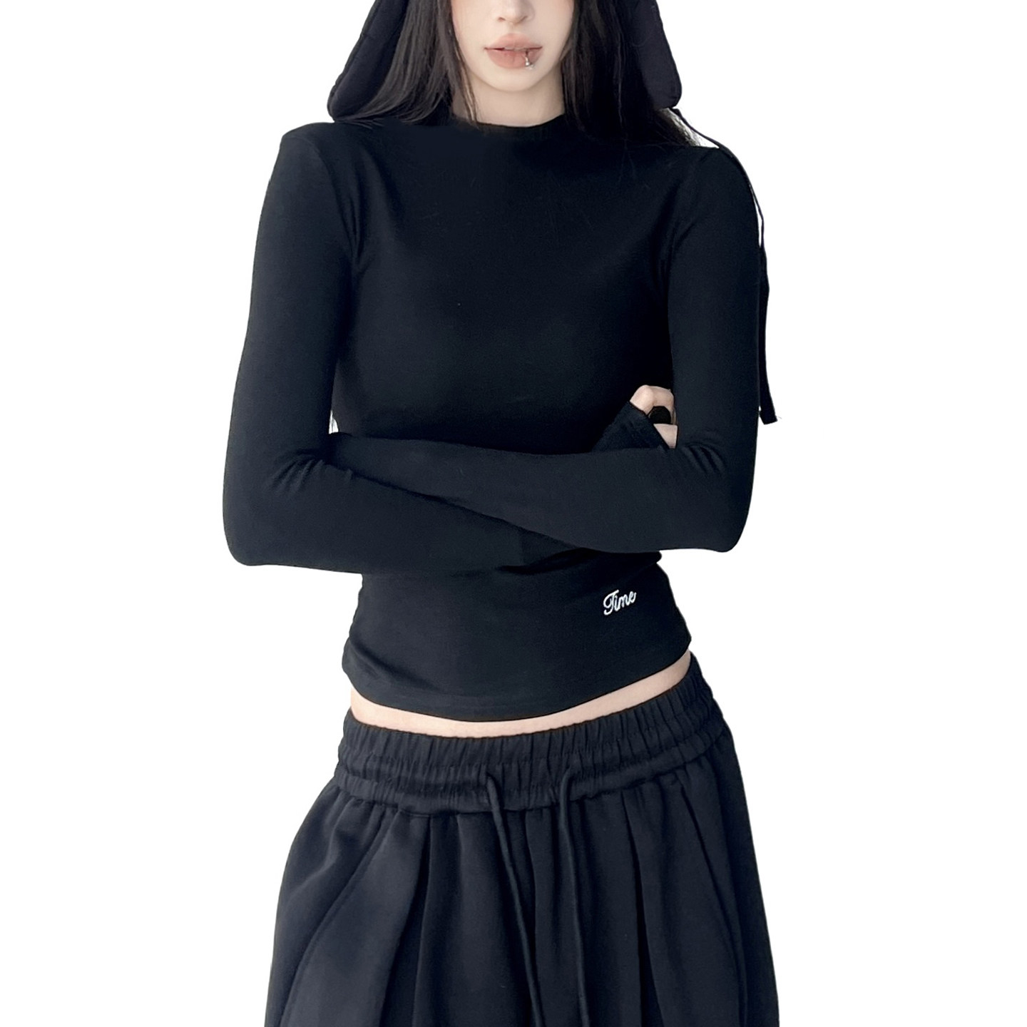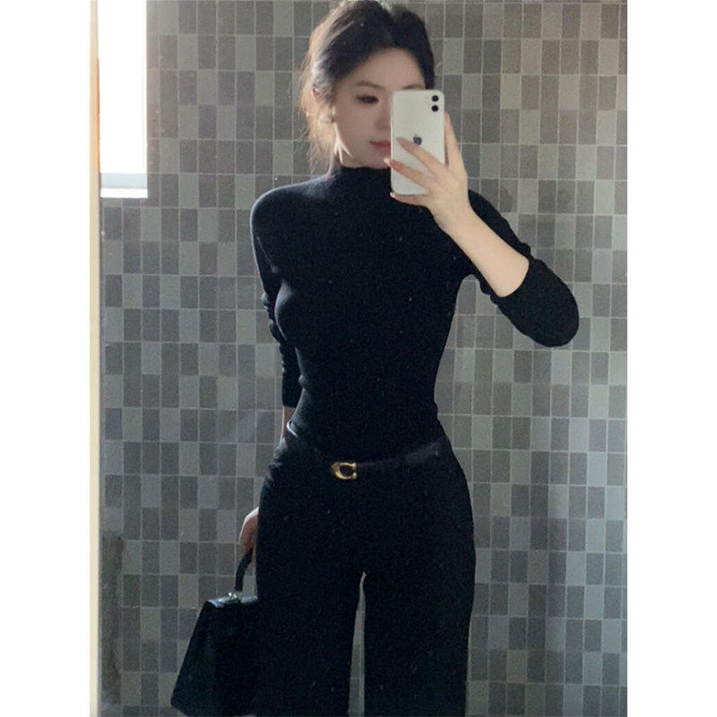 新春秋冬t恤上衣百搭心机洋气半高领女士内搭显瘦黑色加绒打底衫