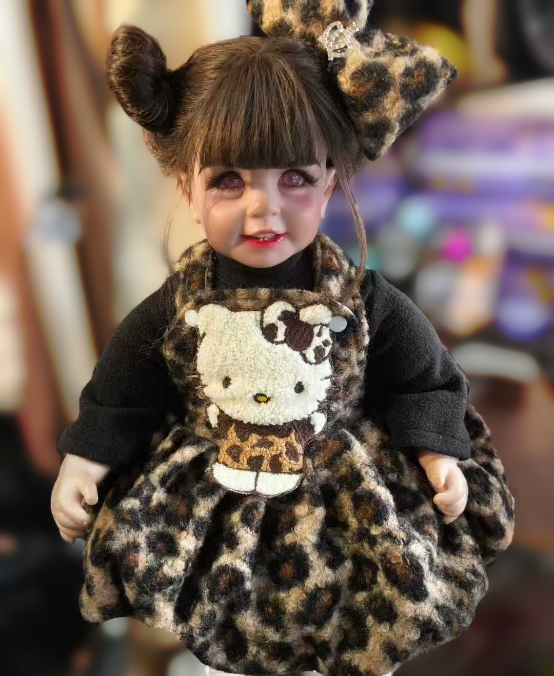 55cm娃娃衣服女孩可爱套装女娃黑色加绒打底衫豹纹背带裙子两件套