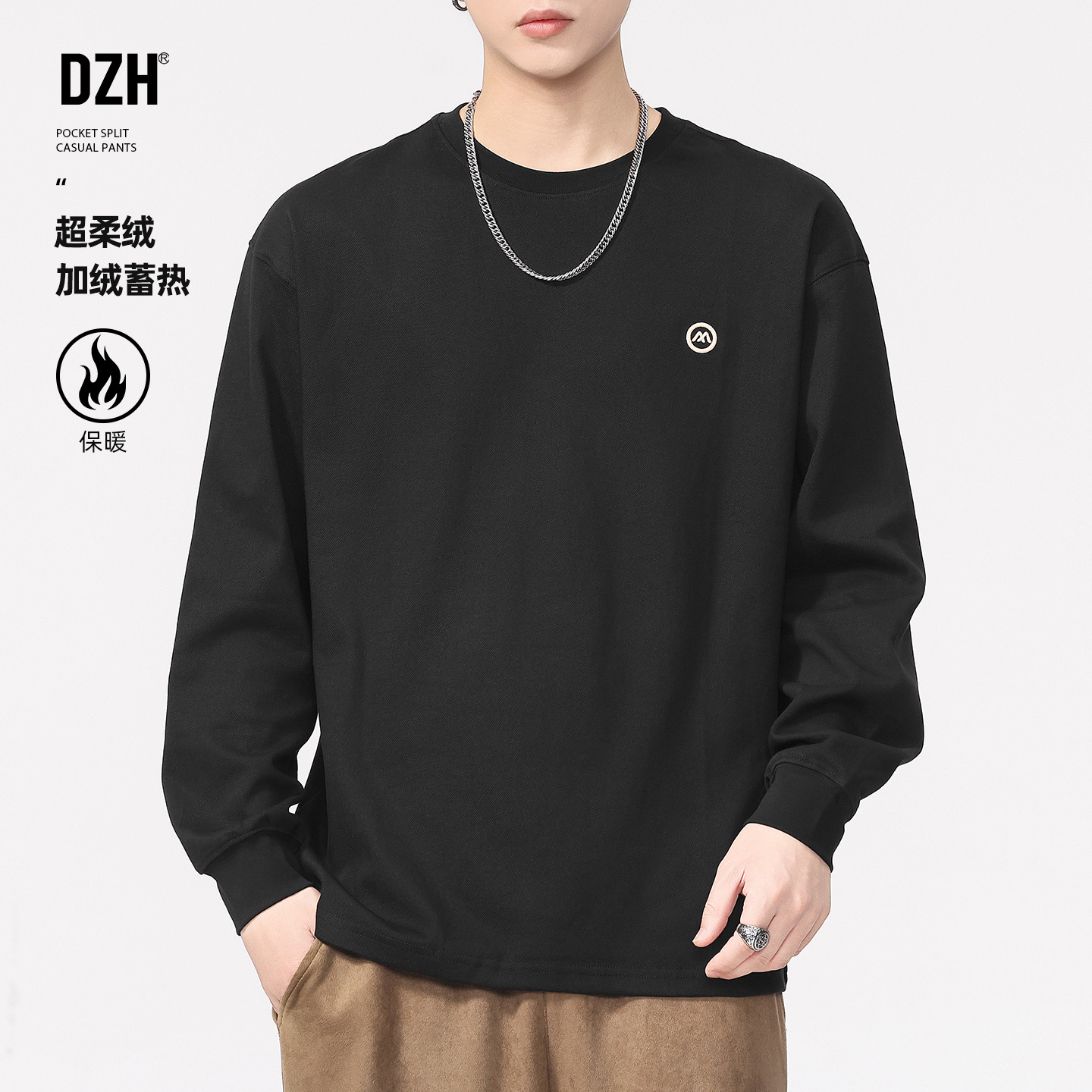 秋冬德绒保暖男士内衣加绒加厚内搭打底衫圆领长袖T恤男双面黑色