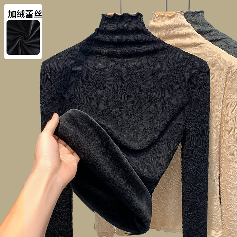 网纱蕾丝打底衫女内搭2025新款超火半高领黑色加绒上衣轻奢高级感
