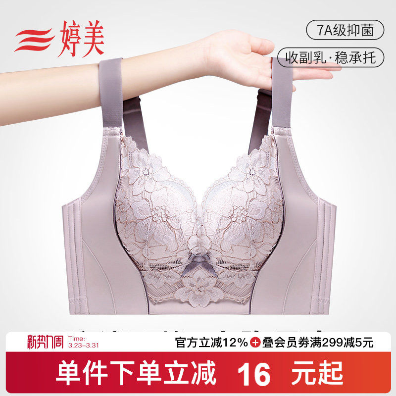 婷美院线款小胸聚拢显大内衣提拉防垂调整型收副乳软支撑蕾丝文胸