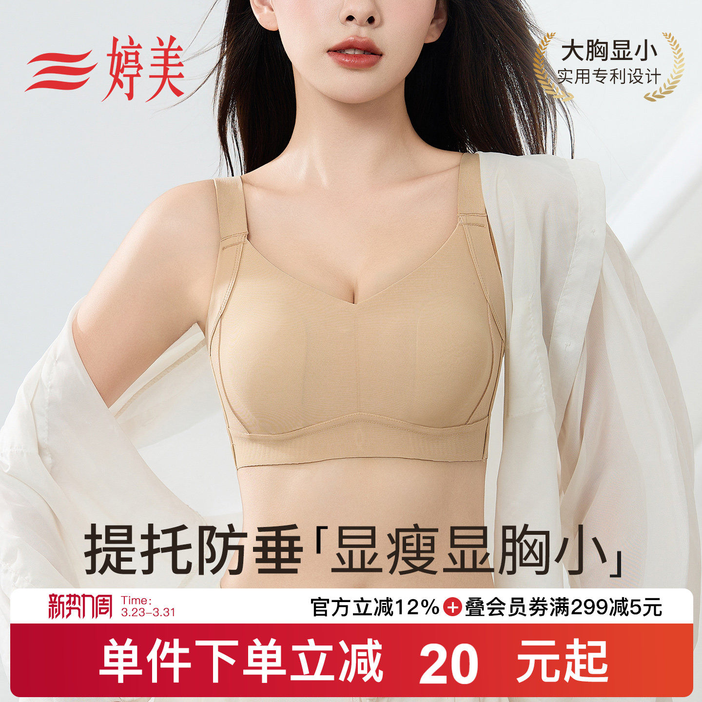 润微提拉显小6.0AIR内衣薄款防下垂收副乳聚拢调整型大胸显小文胸