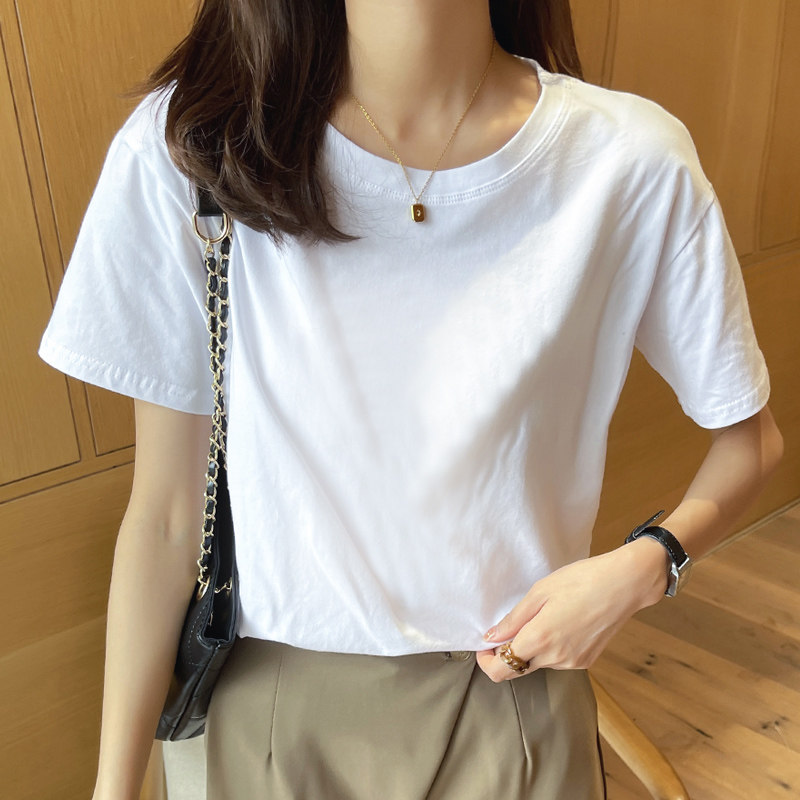 2024夏季简约短袖T恤女学生白色竹节棉打底衫宽松圆领半袖上衣服