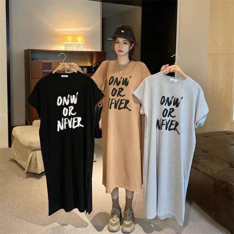 韩国大码t恤女装夏季宽松简约大码连衣裙子学生短袖打底衫上衣 女