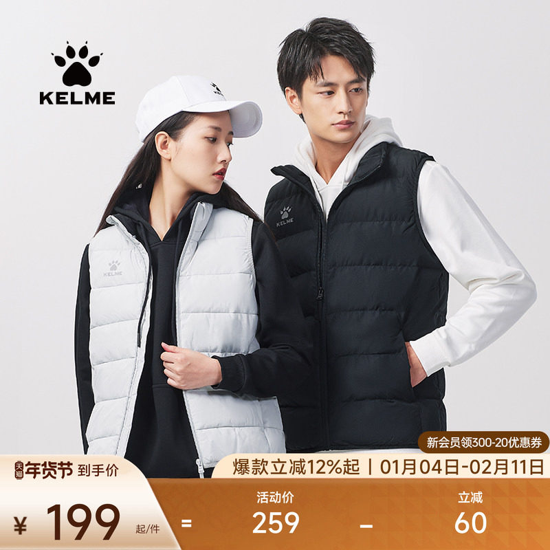 KELME卡尔美运动棉马甲女款训练冬款户外穿休闲保暖坎肩外套男童