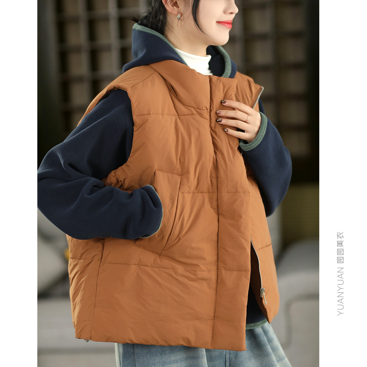 园园美衣冬季时尚定制高密夹棉马甲外套女文艺抽绳摆加厚无袖马夹