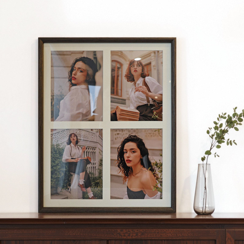 五月画馆洗照片相框8寸四连框艺术情侣闺蜜照片实木相框宝宝相框