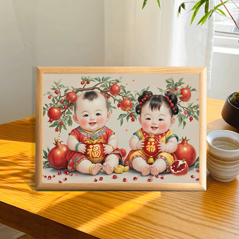 年画 画娃娃送子图宝宝相框摆台备孕男女龙凤胎孕妇求子金童玉女