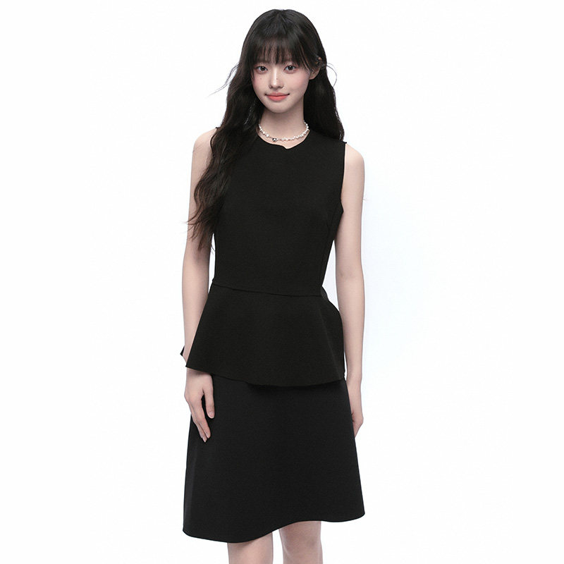 King Prince无袖收腰荷叶衣摆背心女新款伞裙半身裙黑色套装女夏