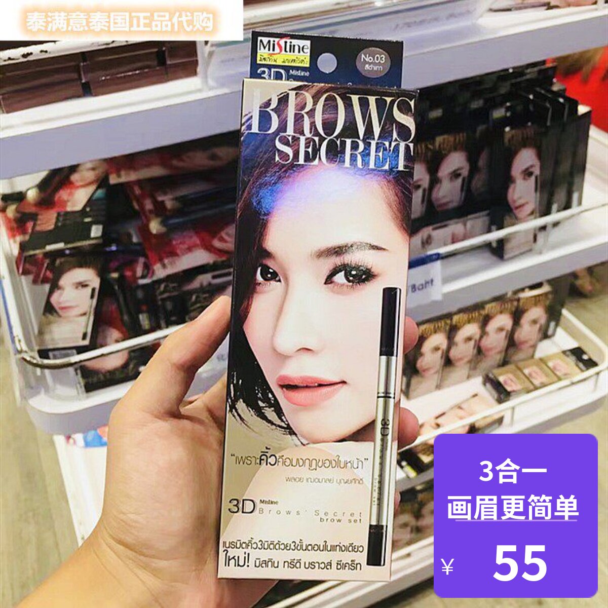泰国进口 Mistine3D立体眉笔+眉粉+画眉膏三合一防水防晕染TY-028