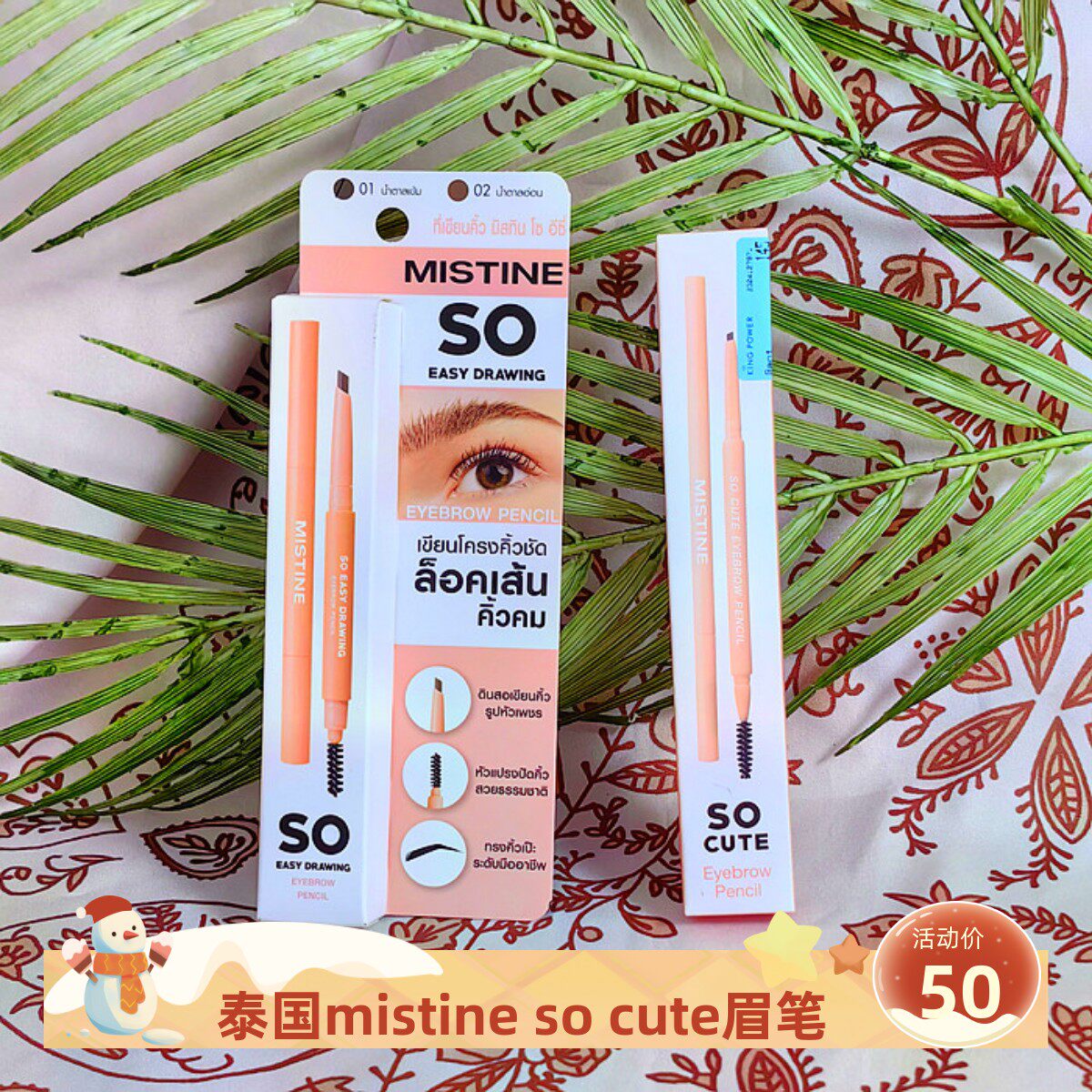 泰国代购Mistine3D立体眉笔一字眉眉粉染眉膏三合一眉笔防水防晕