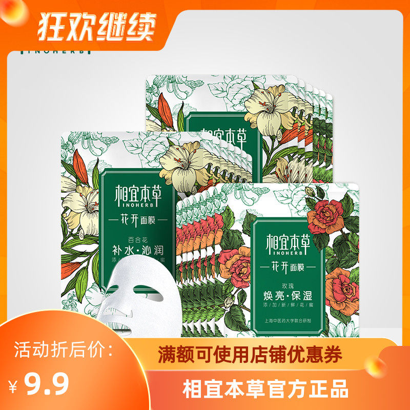相宜本草红景天四倍凝白龙胆积雪草双效面膜贴补水保湿女官方正品