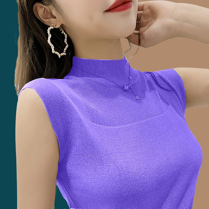 针织短袖女新款半高领打底镂空内搭性感背心女外穿吊带上衣女网红