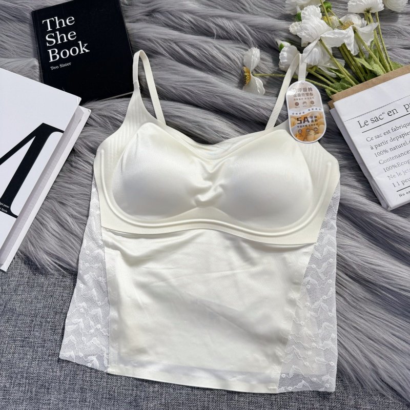 新款冰丝美背法式蕾丝吊带性感背心女文胸一体固定杯打底V领内搭