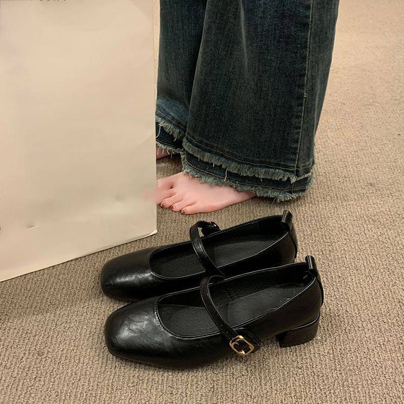 法式中高跟黑色晚晚瓢鞋方头粗跟软妹日常外穿浅口玛丽珍单鞋子女