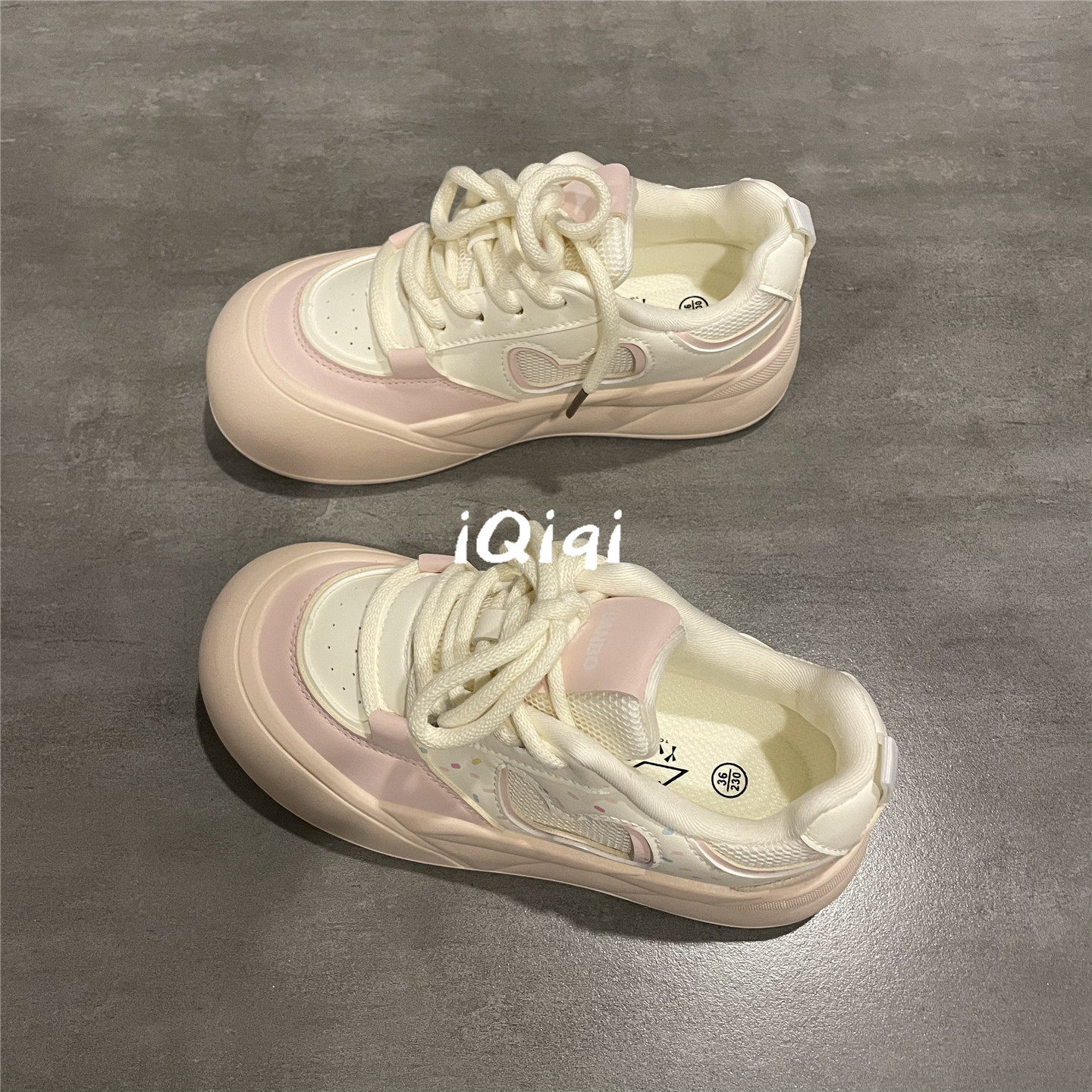 七七主人家 甜美风粉色软妹鞋子女2025秋季新款厚底休闲百搭板鞋