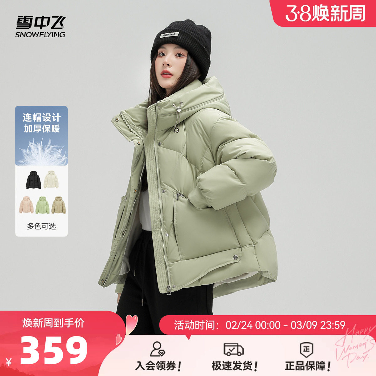 雪中飞2026春季新款女士短款连帽羽绒服显瘦时尚韩版加厚保暖外套