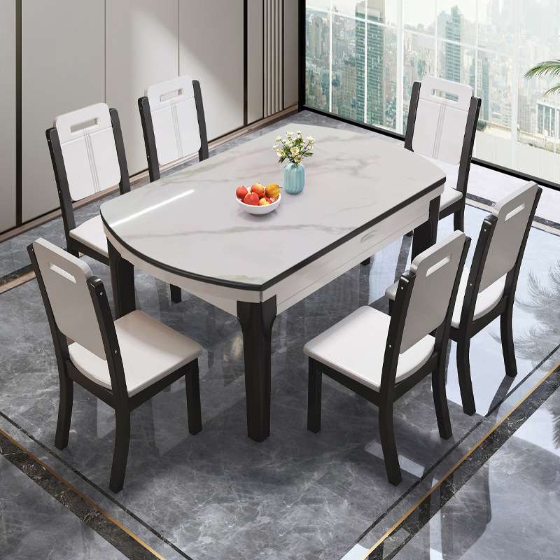 岩板餐桌椅组合现代简约家用小户型折叠伸缩饭桌实木方圆两用桌子