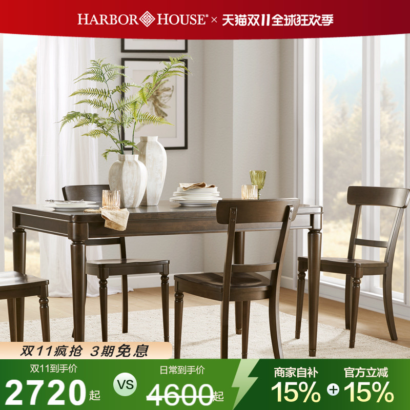 HarborHouse美式复古餐桌餐椅组合小户型家具方桌现代简约饭桌
