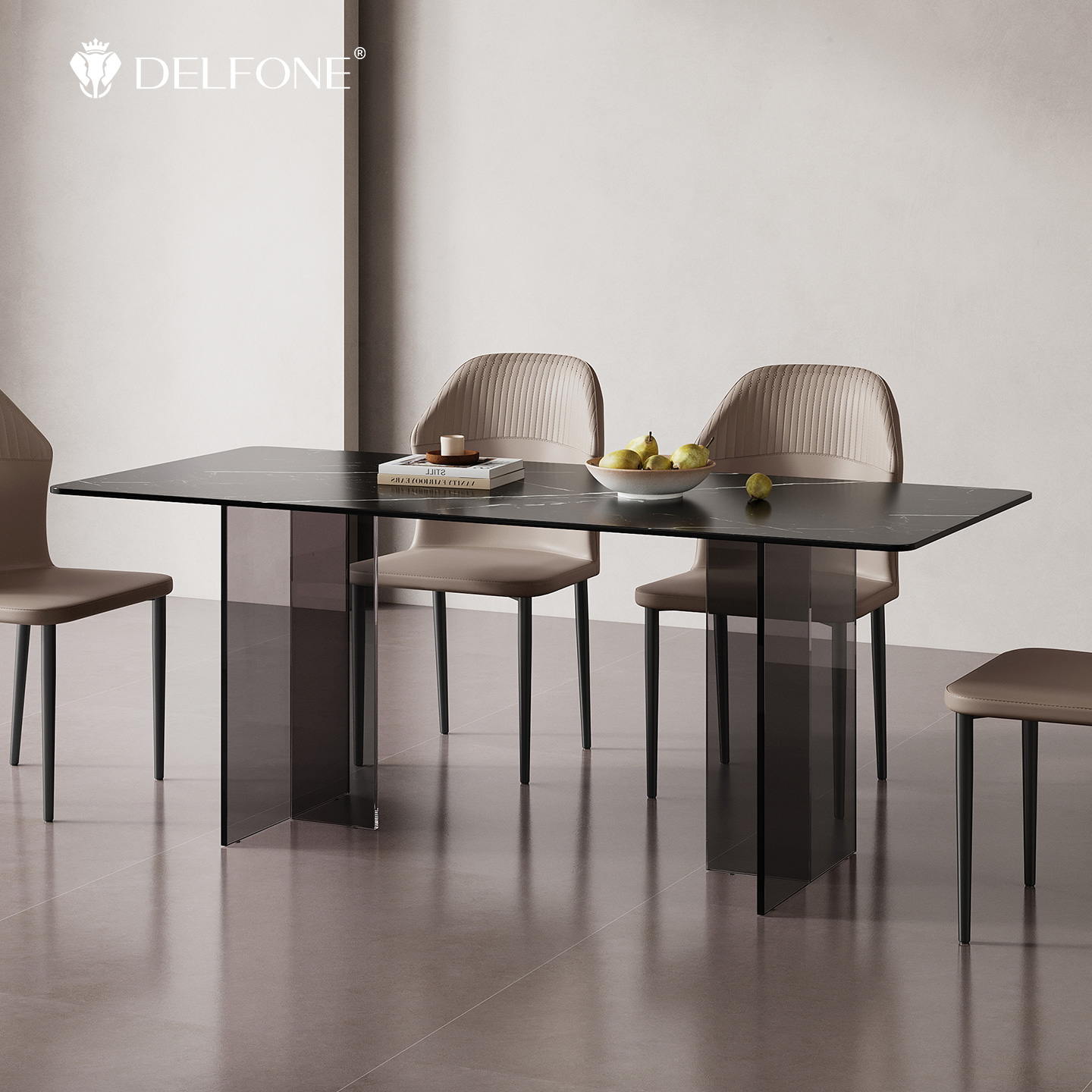 德利丰拿铁岩板洞石餐桌铝合金黑色客厅家用小户型现代简约饭桌椅