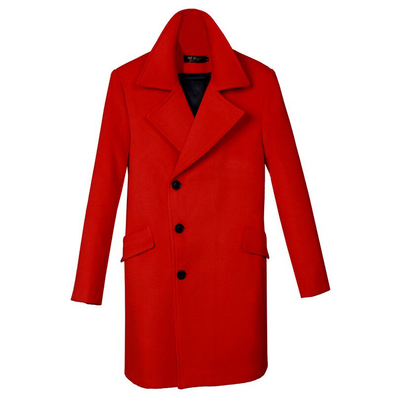 优质品质男本命年红色酒红色枣红羊毛呢子风衣中长款毛呢大衣外套