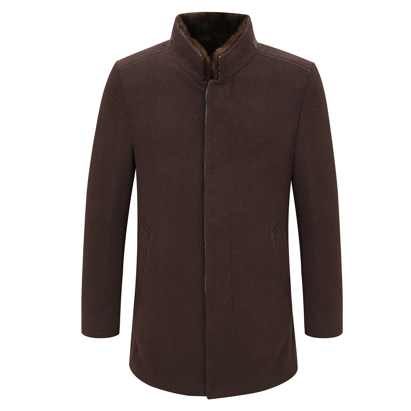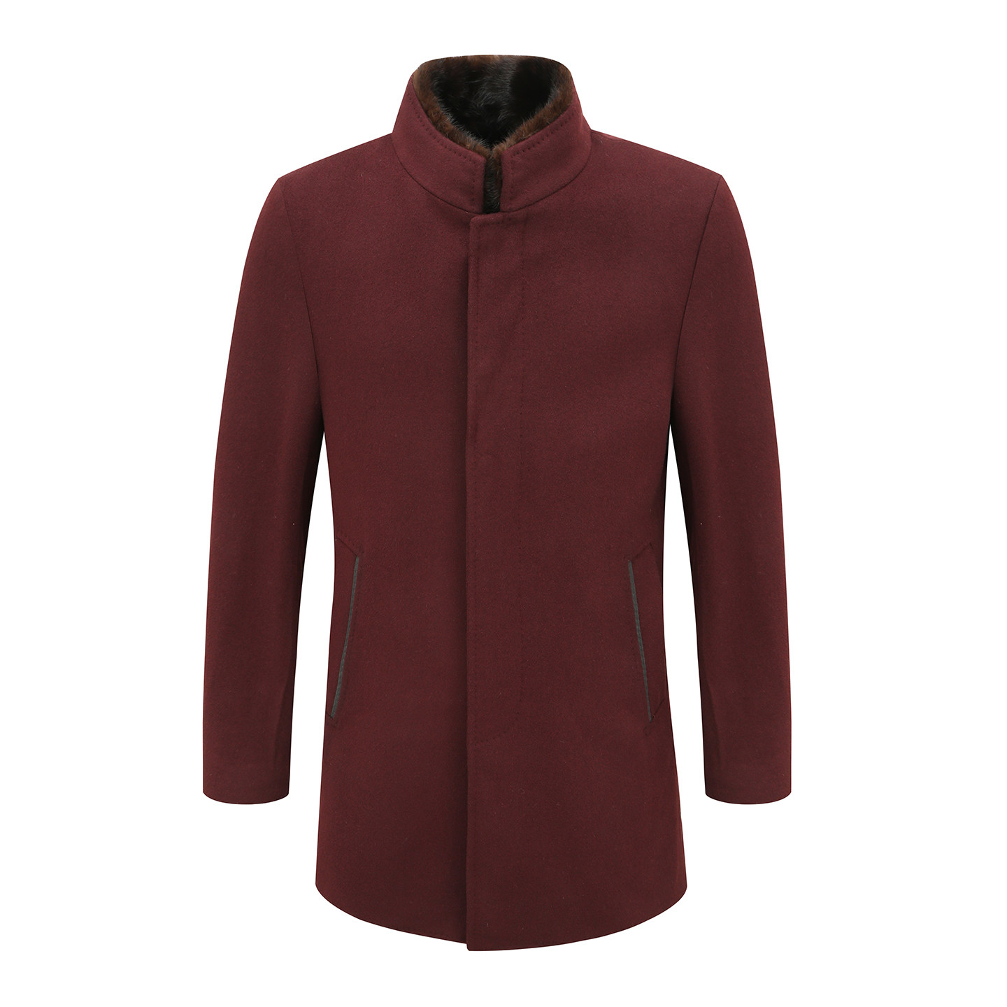 MY494美秋冬男式大衣 羊毛水貂毛领直排扣保暖防风外套 暗红色