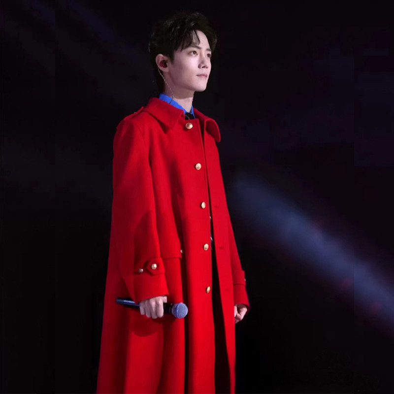 星服肖战同款毛呢大衣红色中长款男女同款过膝宽松秋冬季羊绒风衣