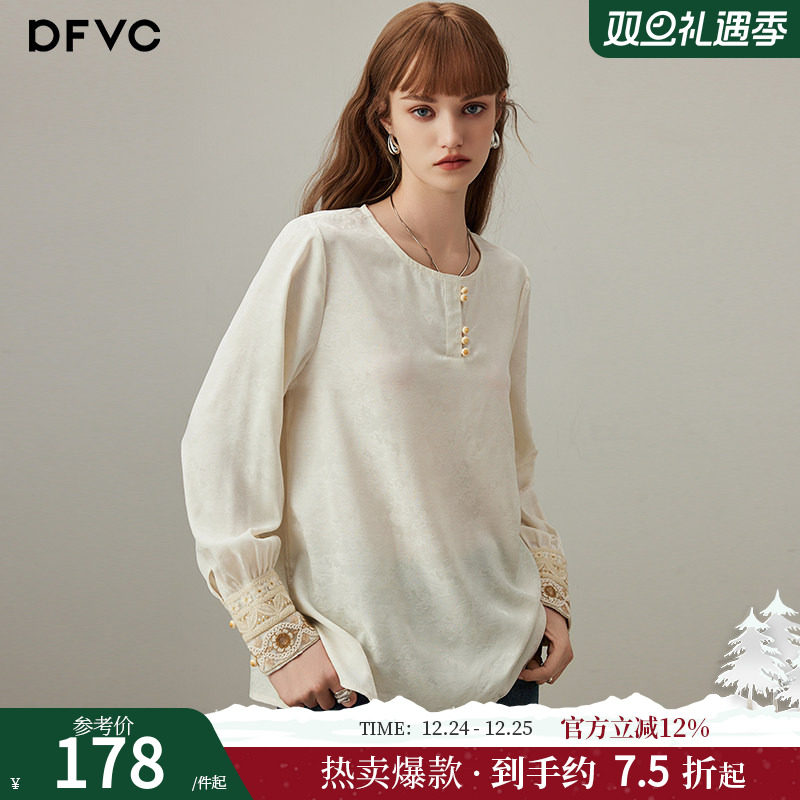 dfvc新中式国风长袖衬衫女2025年秋季新款刺绣袖口提花衬衣打底衫