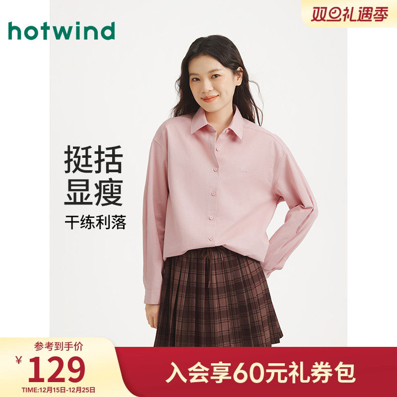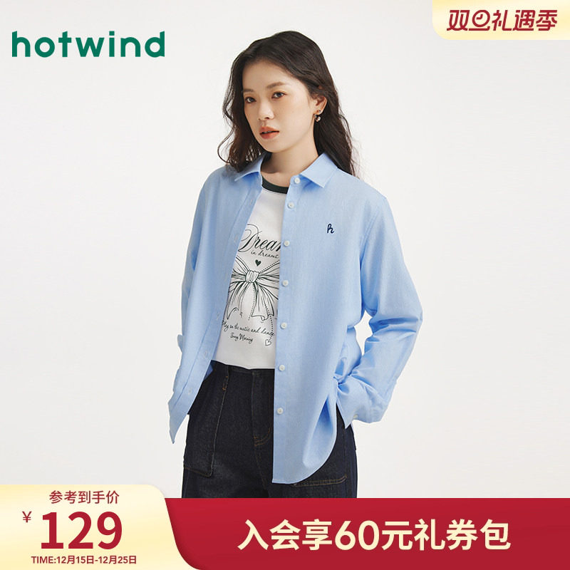 热风女士长袖衬衫上衣2025年秋季新款刺绣通勤内搭打底衫打底衬衣