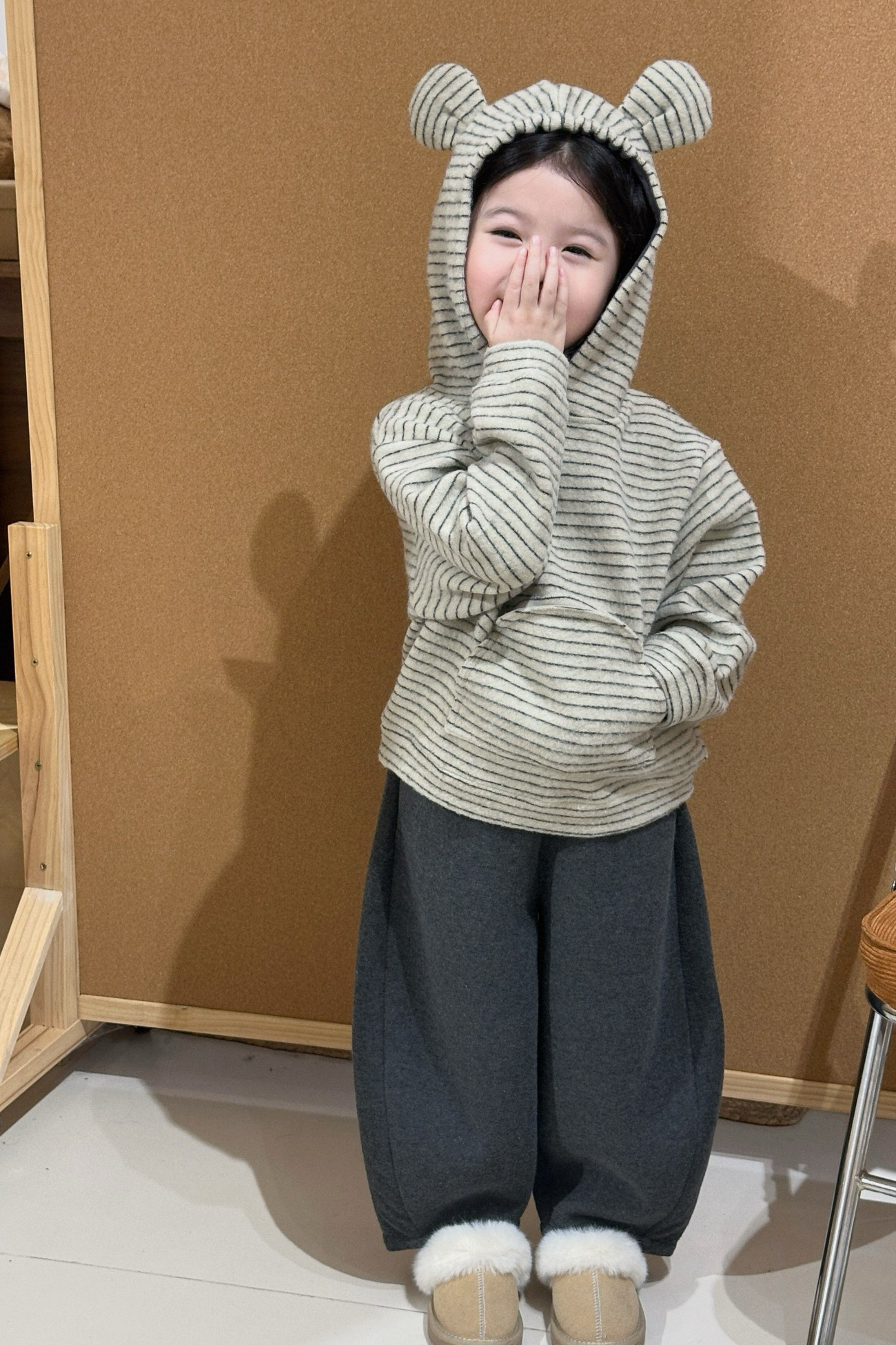 儿童连帽卫衣套装秋装2025女童小熊耳朵条纹磨毛上衣休闲裤两件套