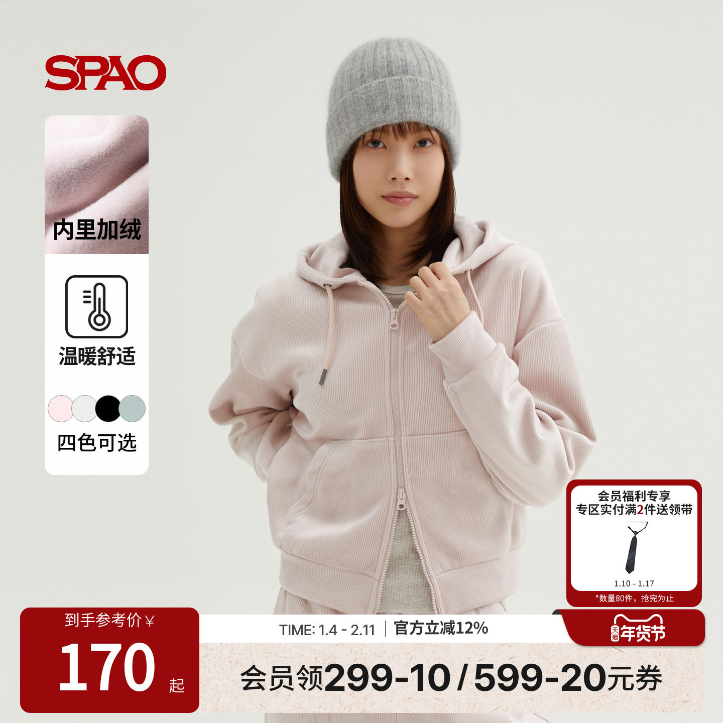 SPAO韩国同款25年冬季新品女加绒舒适休闲cleanfit连帽衫卫衣外套