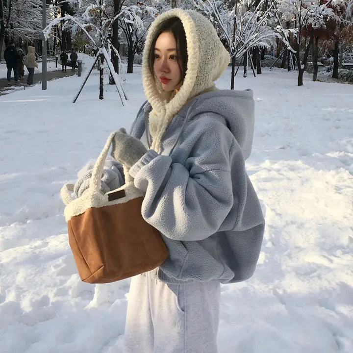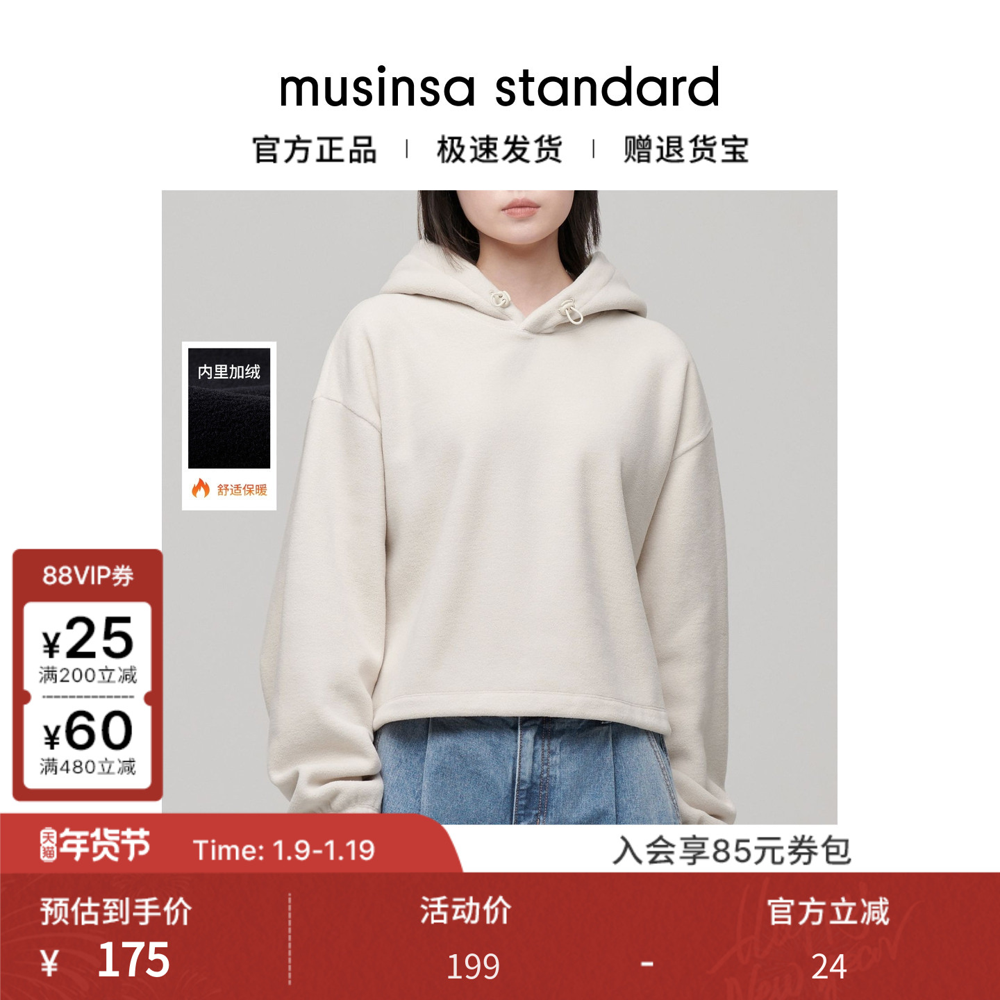 韩国25秋冬女士连帽卫衣柔软加绒宽松短款外套musinsa standard
