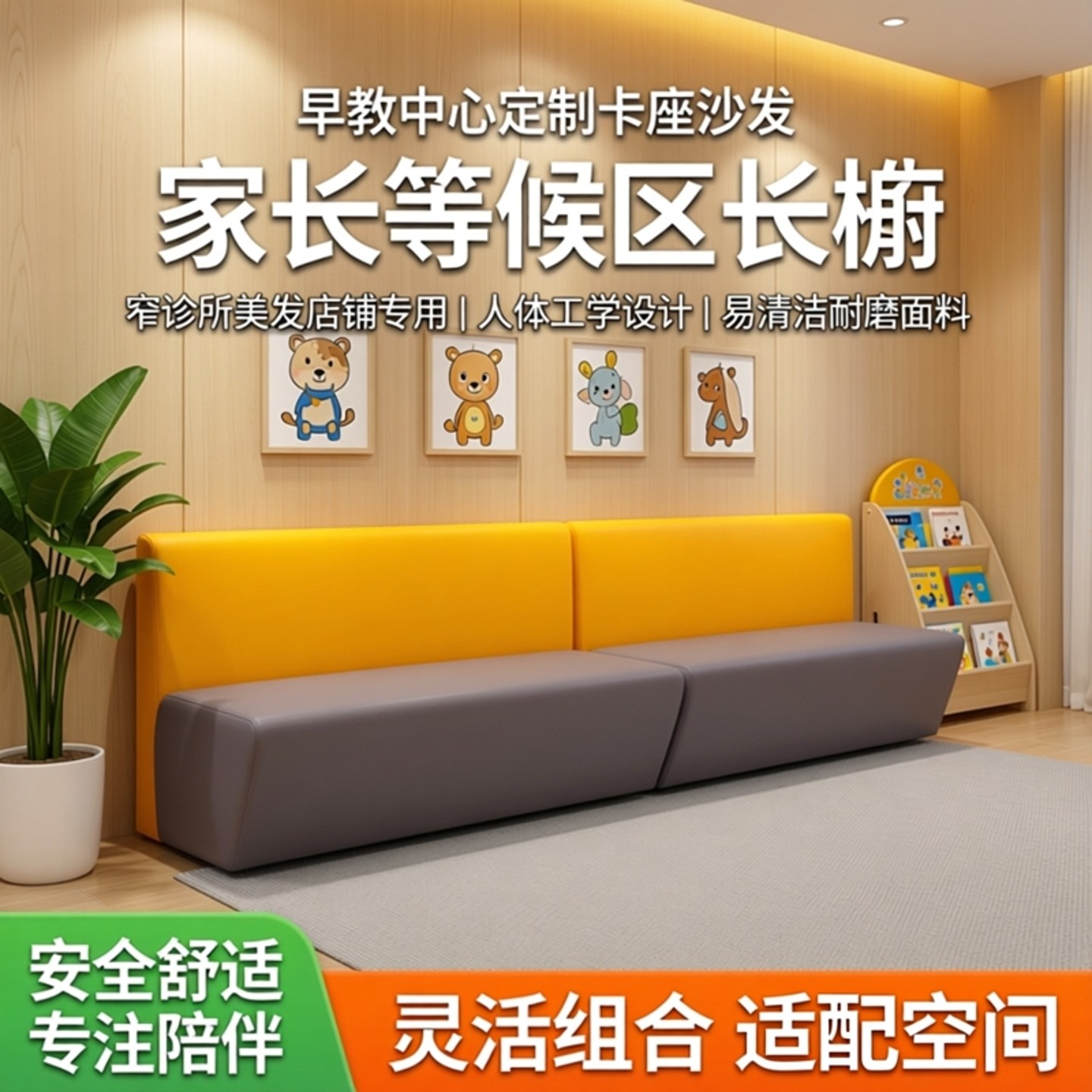 早教中心幼儿园定制卡座沙发家长等候休息区长椅窄诊所美发店铺用