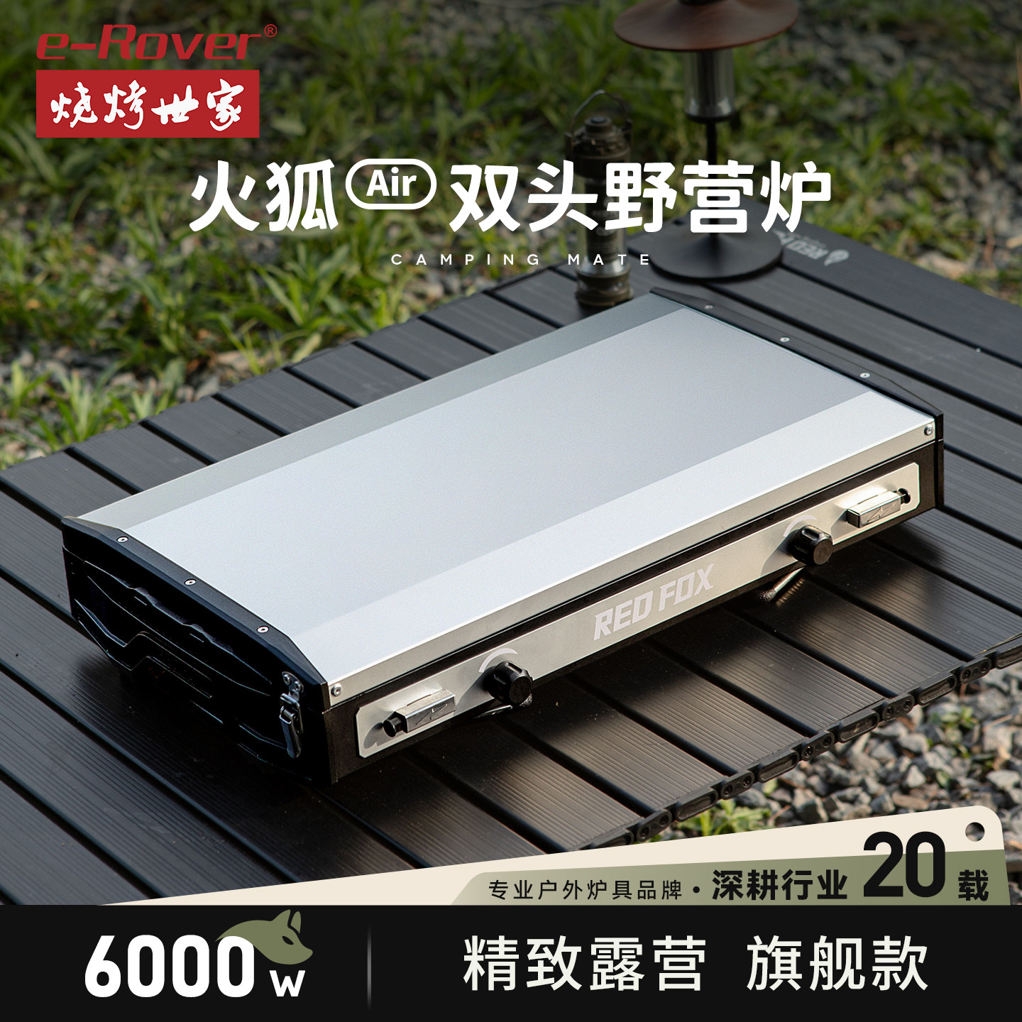 烧烤世家双头炉野营烧烤炉户外煤气燃气炉露营气炉便携折叠卡式炉