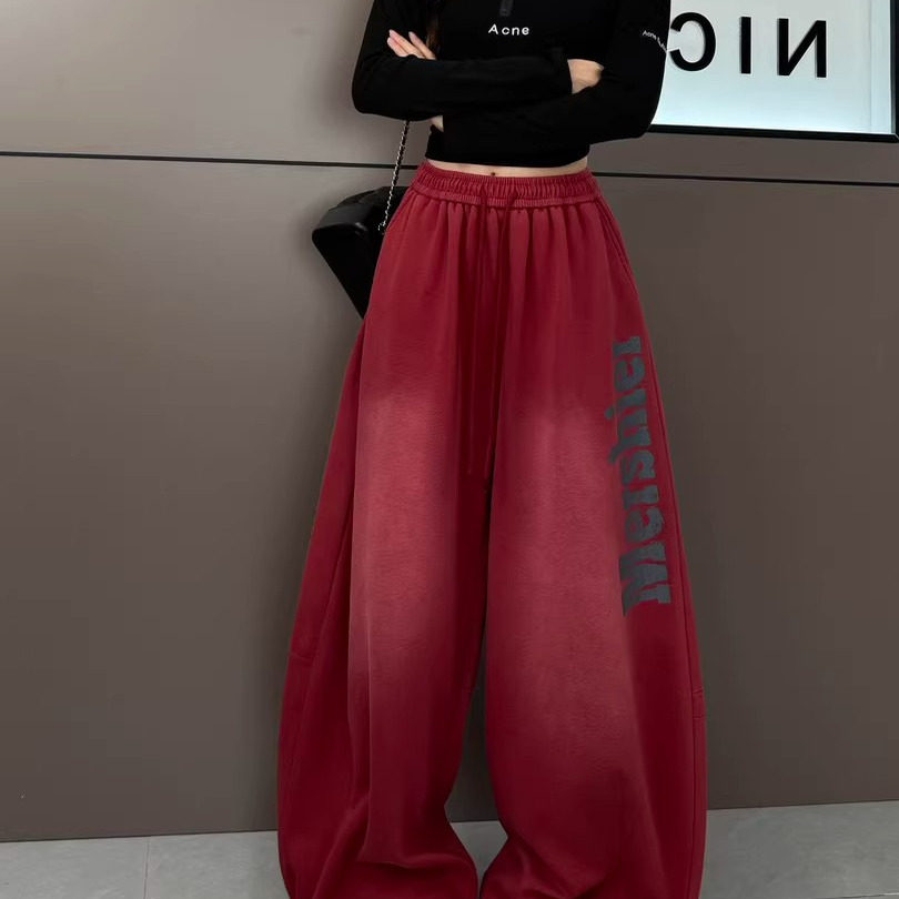 清仓捡漏梧桐裤女香蕉运动裤子直筒雪尼尔加绒加厚阔腿裤秋冬卫裤