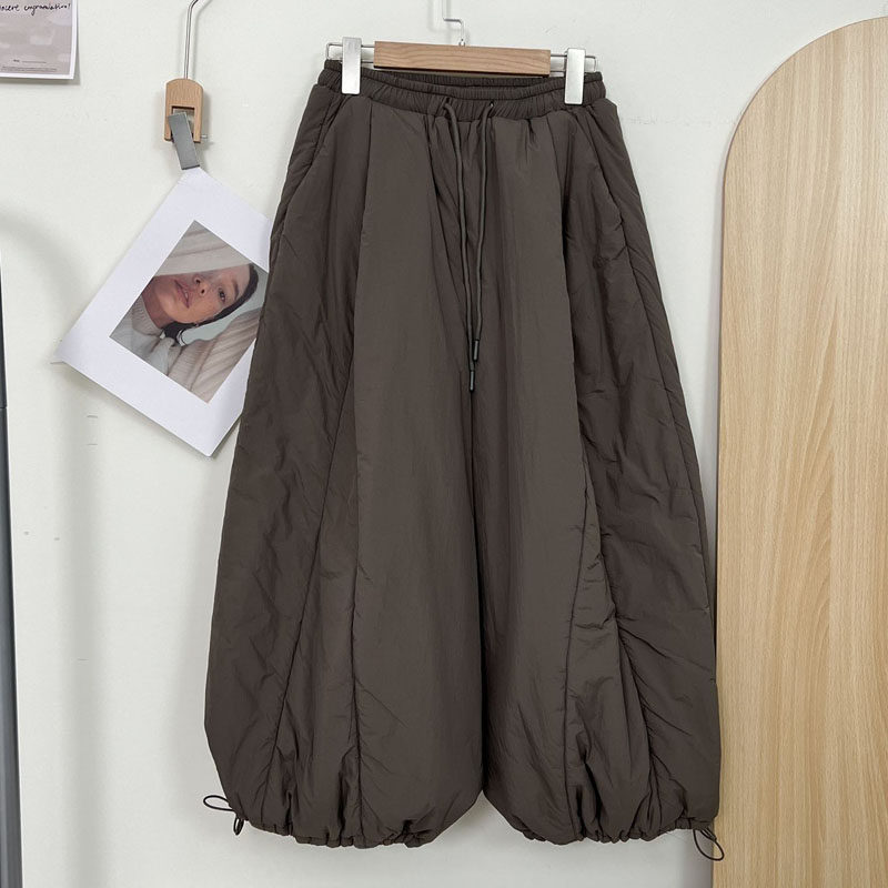 韩版巨显瘦夹棉设计感束脚阔腿裤秋冬松紧腰抽绳胖mm遮跨休闲裤子