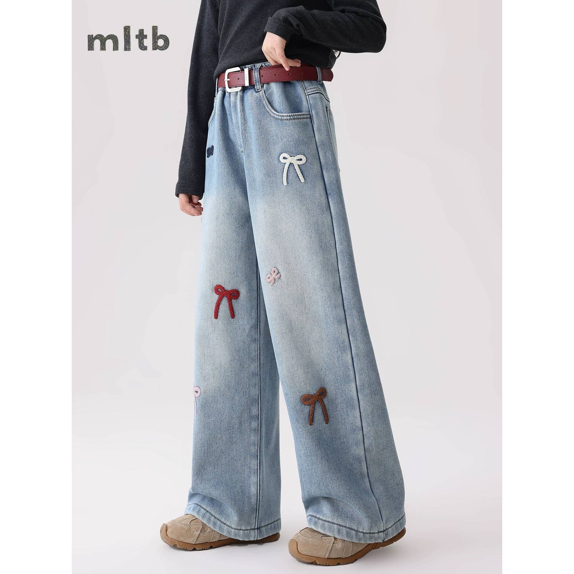 官方品牌女童加绒牛仔裤2025新款冬季儿童韩系女孩阔腿裤秋冬大童